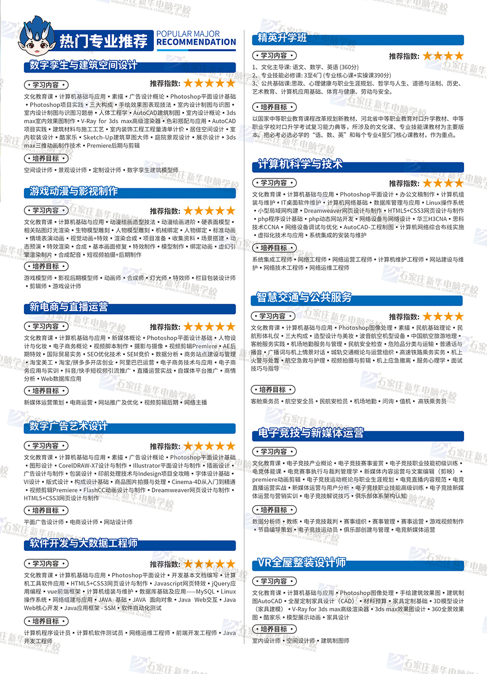 无极初中毕业生:石家庄新华电脑学校2024招生简章