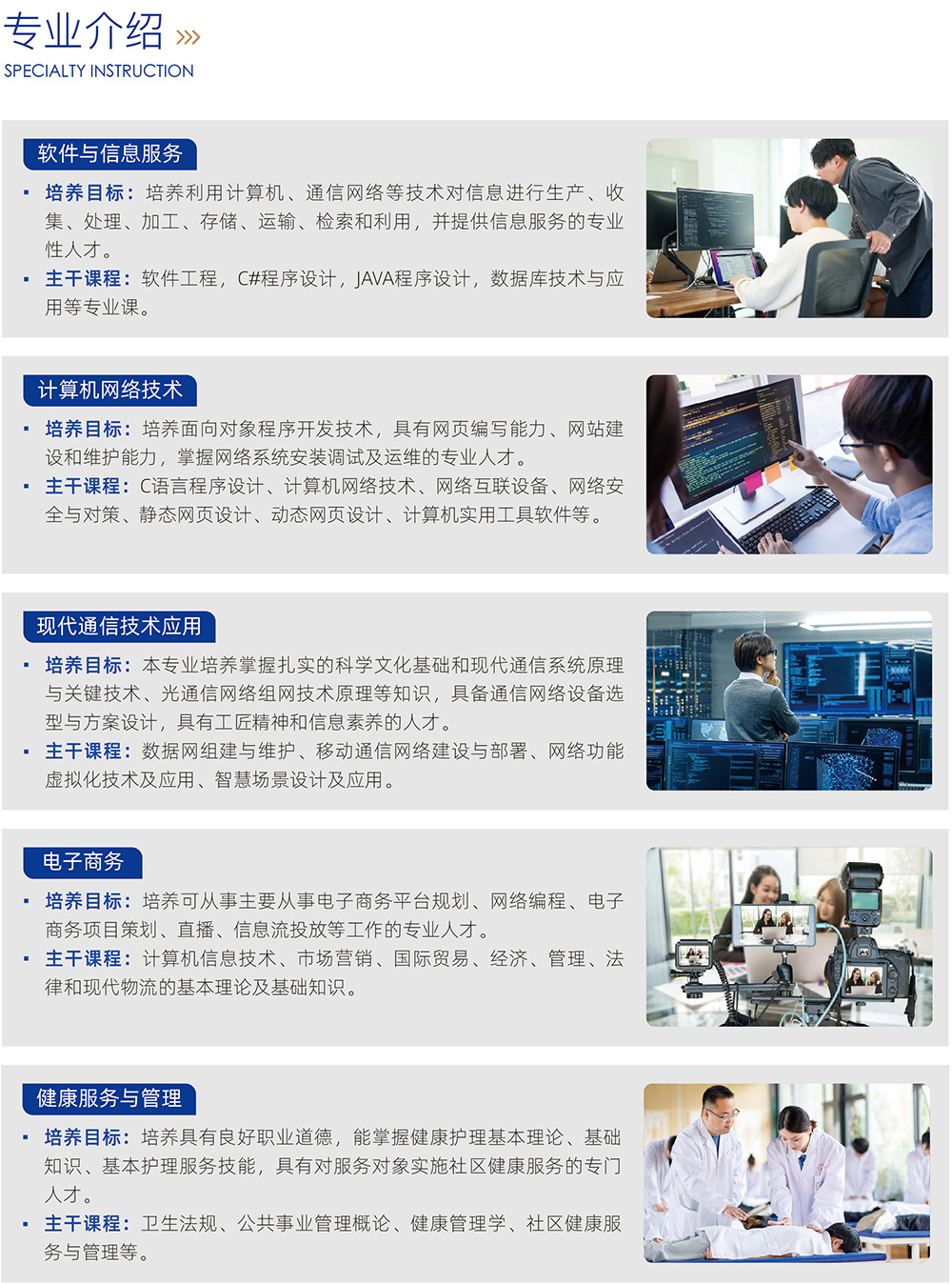 妆与形象设计,美发与形象设计,美容美体,计算机应用与管理,电子商务,室内设计与装潢,航空服务,摄影摄像技术。