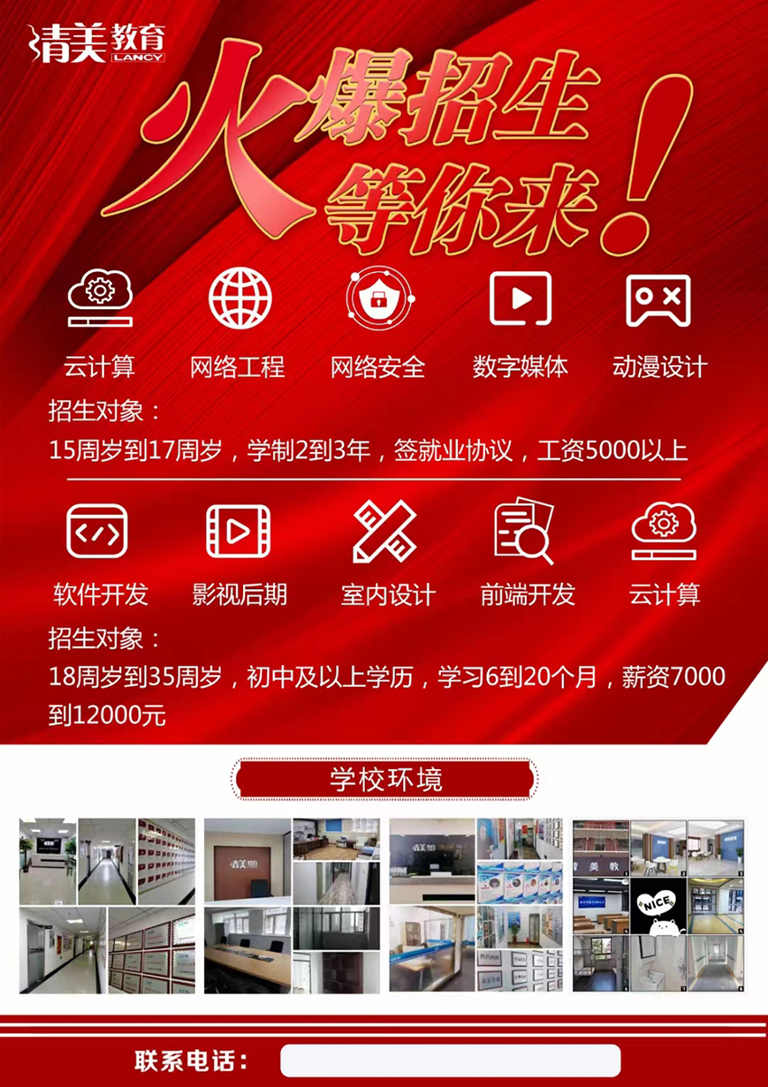 清美教育主要以软件开发、云计算、大数据、人工智能、网络工程、三维动画、影视后期、建筑表现、数字媒体、VR虚拟现实等主流前沿专业为主。重视技能和知识,也注重视学生如何做人。对学生综合素质的提升非常重视,要想立足于社会,做人、技能都要有。清美教育专业设置符合市场需求,以好前景为前提,在设置专业之前,已然考虑到童鞋们的未来。