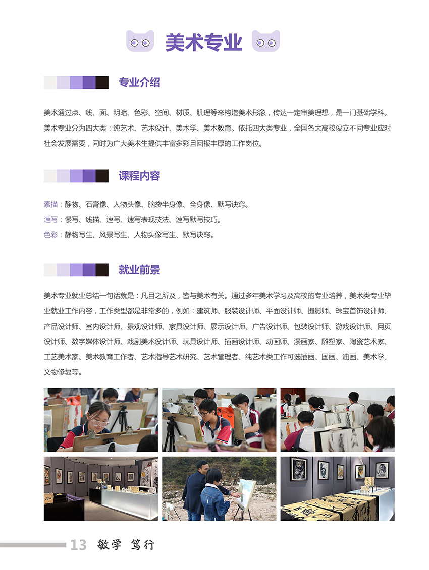 ②艺术类:舞蹈、美术、音乐、播音主持/编导、书法+文化课3年